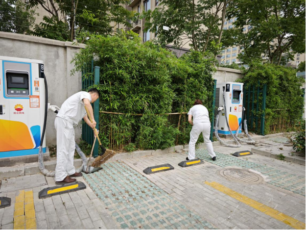 全面排查隐患,筑牢安全防线,本次专项行动聚焦四个重点环节,一是全面维护消防设备,逐一核查灭火器压力、有效期及密封性;二是细致清洁养护设备,使用吹风机、毛刷等工具清理充电桩散热滤网与机体缝隙积尘,确保通风散热良好;三是严格测试整机功能,模拟真实充电场景,检验充电枪插拔灵敏度与响应性能;四是集中整治环境卫生,清扫场站地面、车位及周边区域,清除落叶杂物,擦拭充电桩表面污渍,规范标识标牌布置。